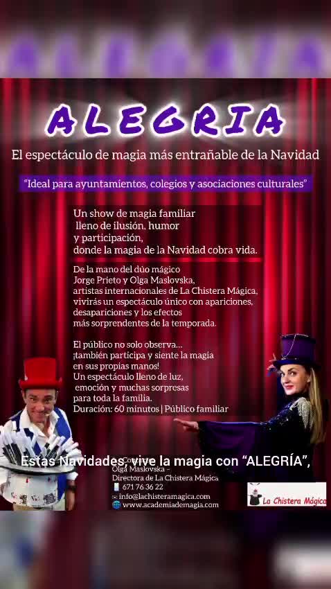 ALEGRÍA es un espectáculo de magia diseñado para el público familiar y pensado especialmente para llenar de ilusión las fiestas navideñas.